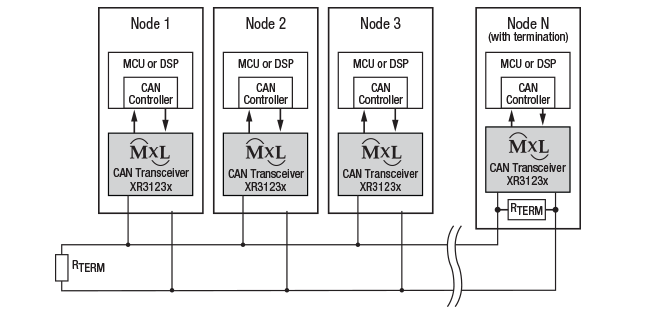 The XR31233 is a controller area network (CAN) transceiver that conforms to the ISO 11898 standard. It provides transmit and receive signaling rates up to 1Mbps between a differential CAN bus and a CAN controller.